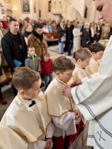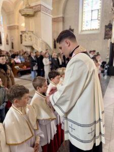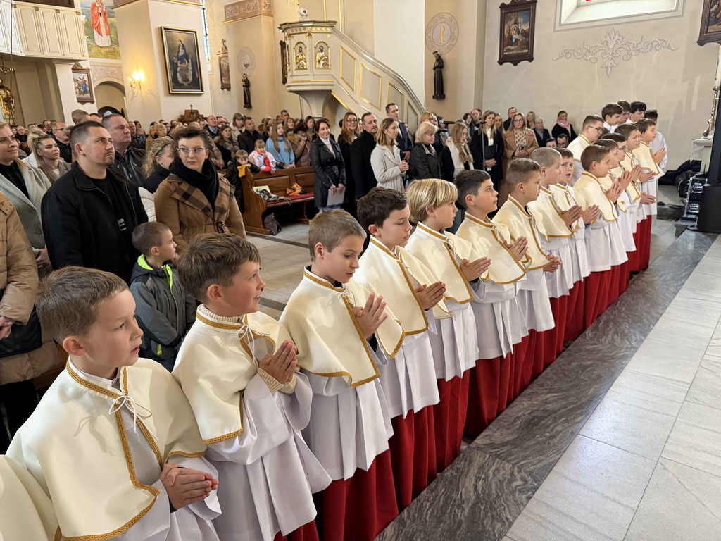 Gratulujemy tym młodym chłopcom ich pięknej decyzji i zapału do służby przy ołtarzu. Cieszymy się, że tak liczne grono zasiliło szeregi naszej wspólnoty ministranckiej.