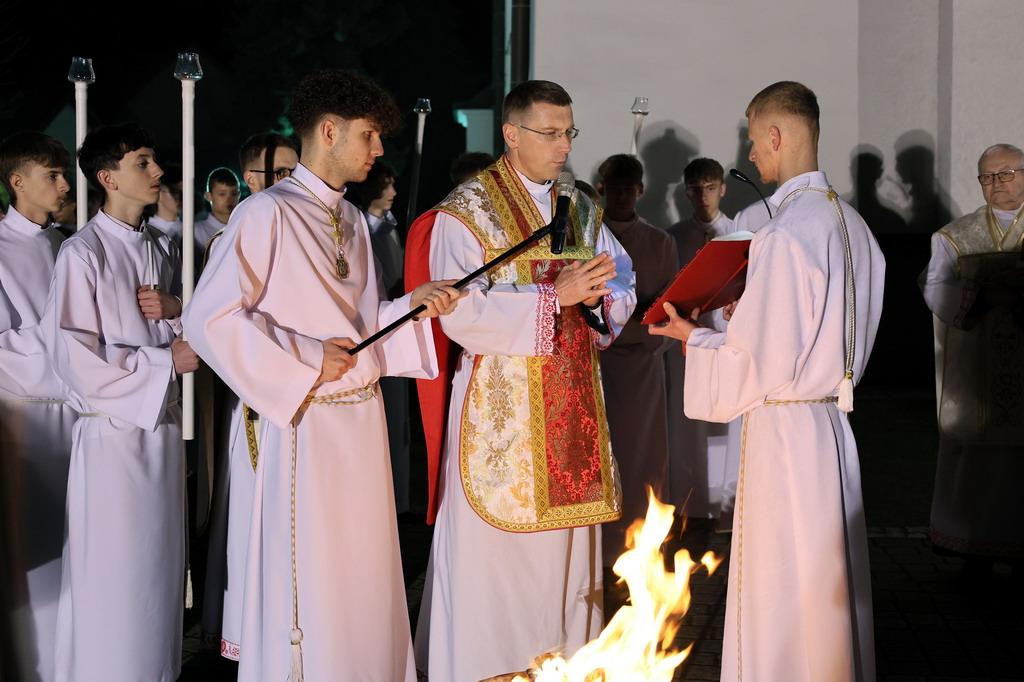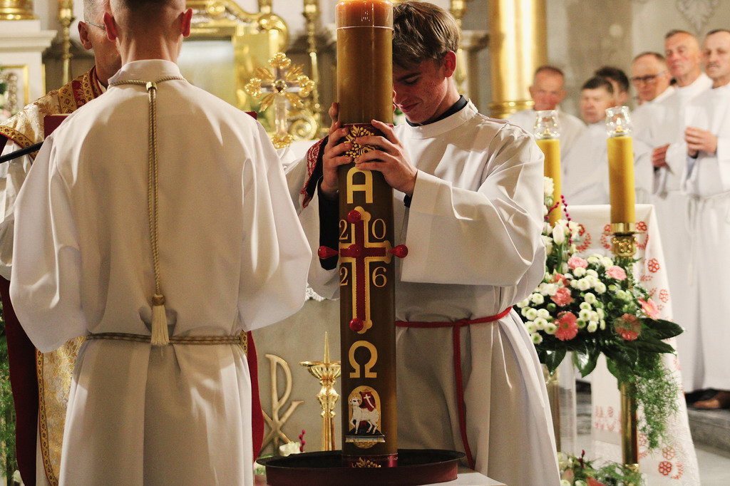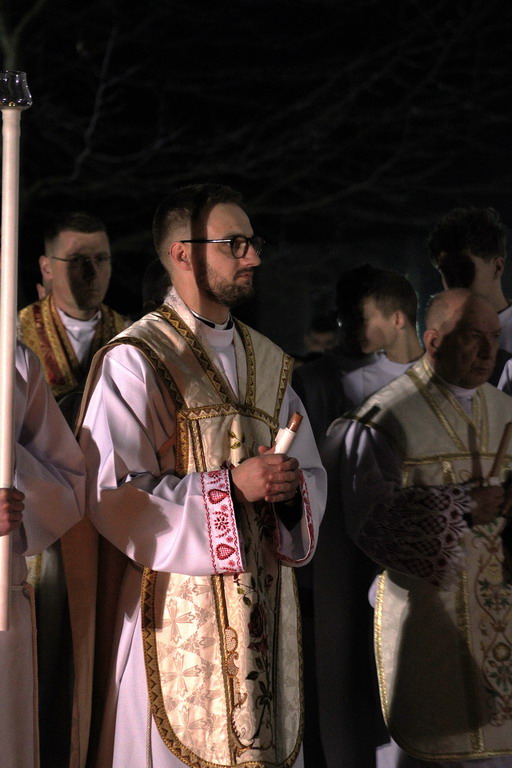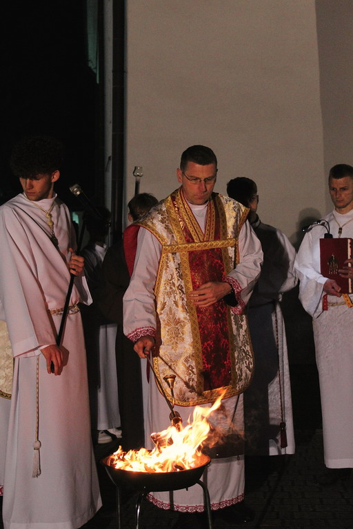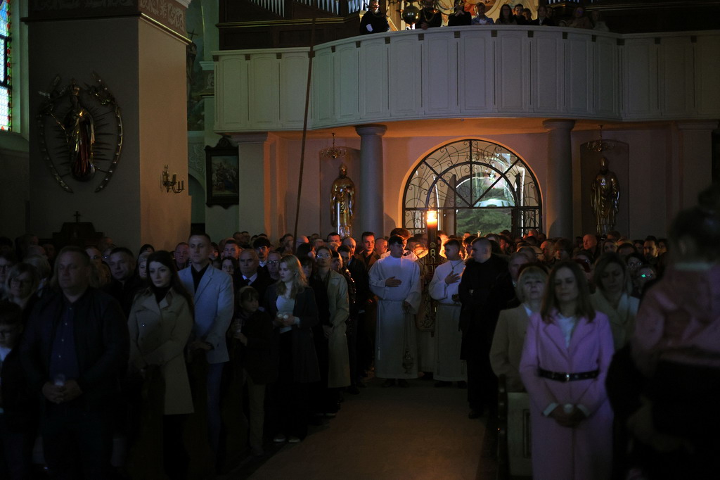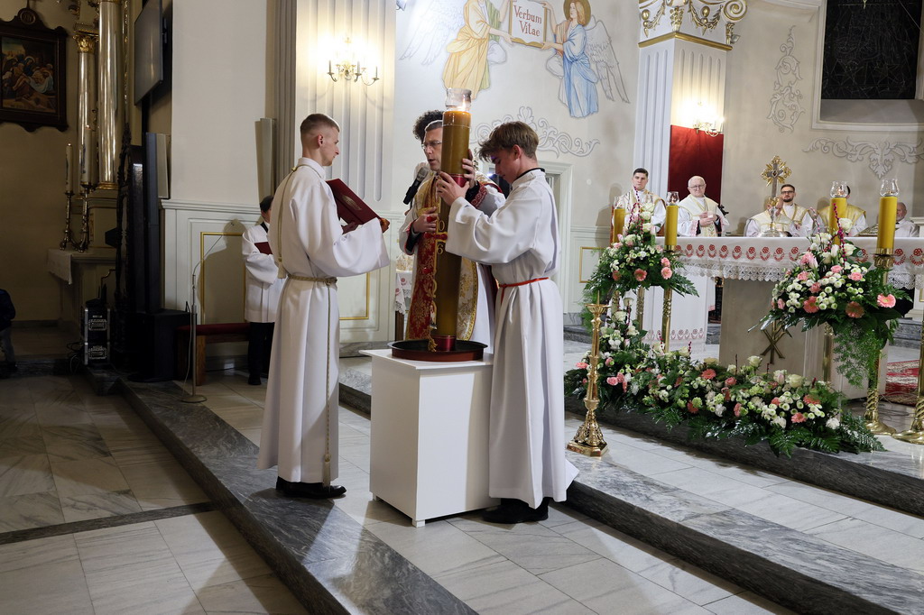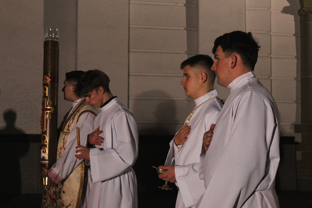 Uroczystości Wigilii Paschalnej rozpoczęły się o godz. 20:00. Liturgia światła, poświęcenie ognia i zapalenie Paschału rozświetliły mrok świątyni, symbolizując zwycięstwo Chrystusa nad śmiercią.