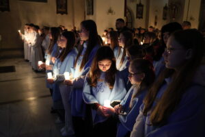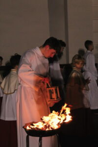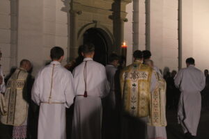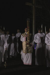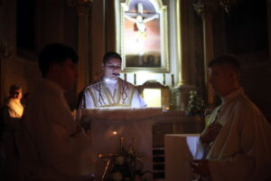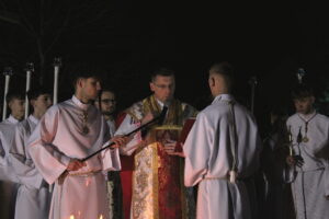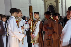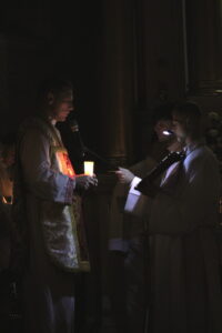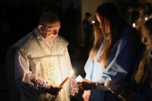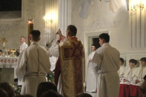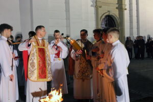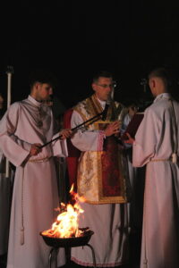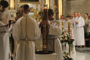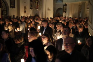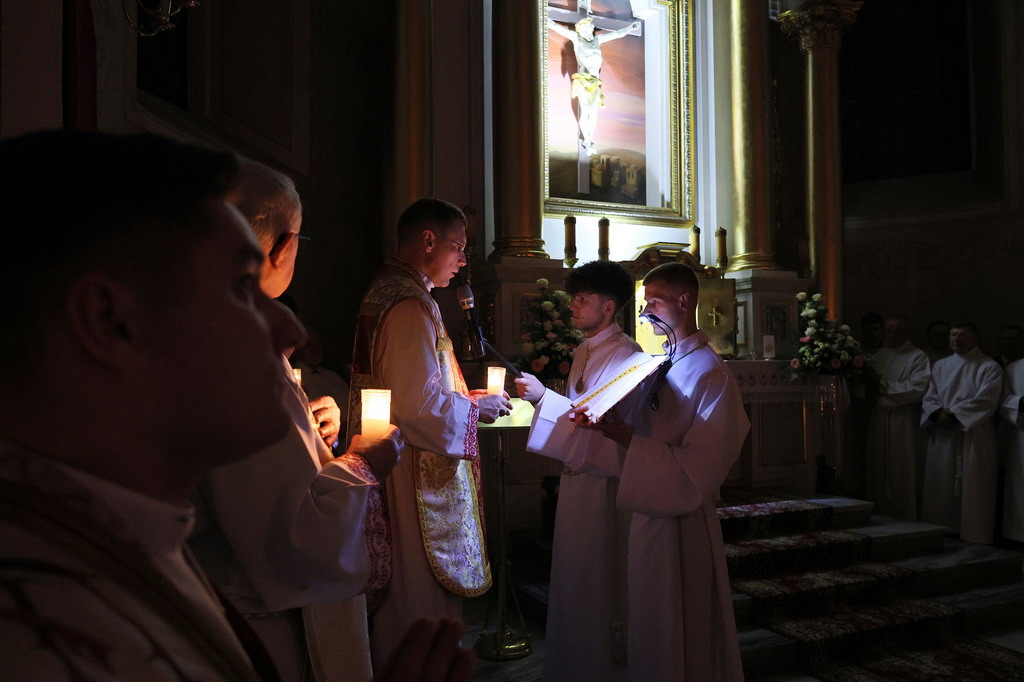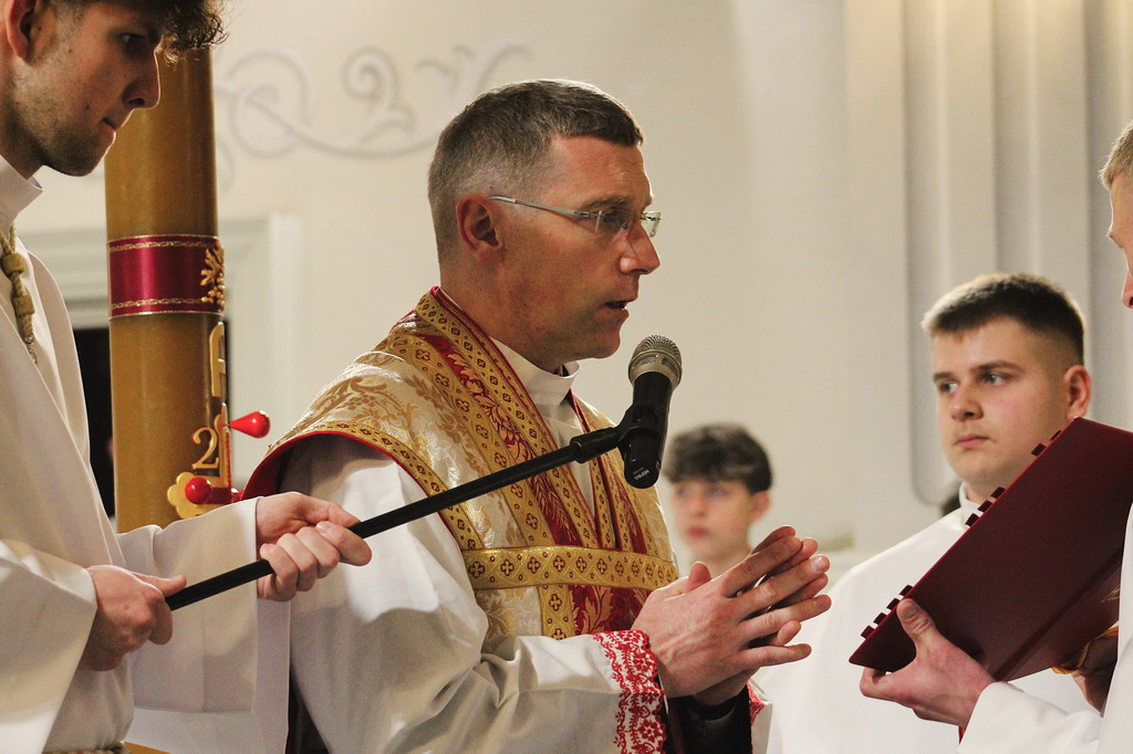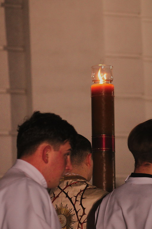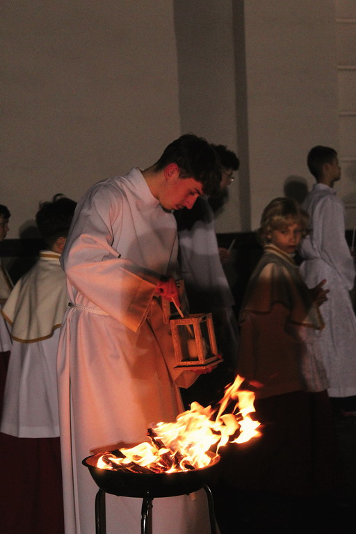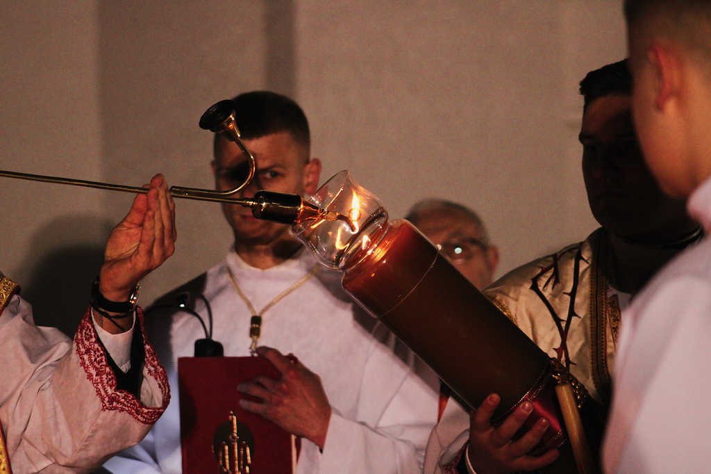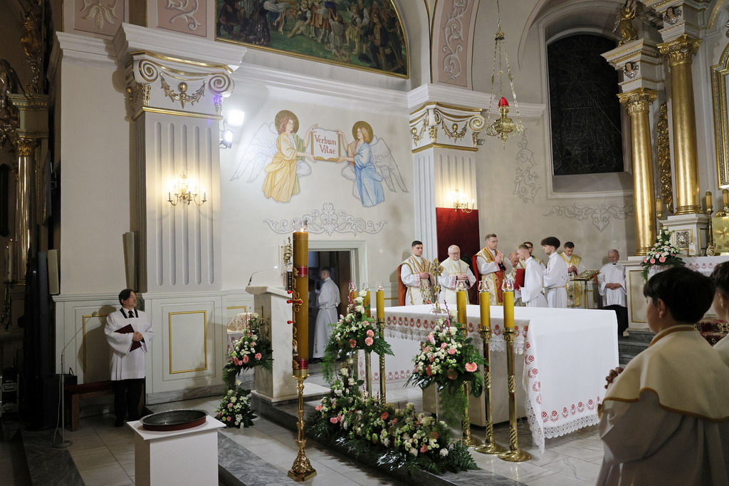 Uroczystości Wigilii Paschalnej rozpoczęły się o godz. 20:00. Liturgia światła, poświęcenie ognia i zapalenie Paschału rozświetliły mrok świątyni, symbolizując zwycięstwo Chrystusa nad śmiercią.
